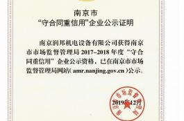 2020年2月26日,接到南京市企業(yè)信用管理協(xié)會(huì)通知,南京潤邦機(jī)電設(shè)備有限公司再次通過2017-2018年度市級(jí)“守合同重信用”企業(yè)的認(rèn)定。誠信潤邦,傾心服務(wù)。